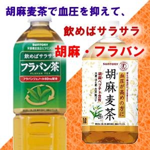 血圧の上昇を抑える特保「胡麻麦茶」と、話題の「フラバン茶」の2ケースセット。